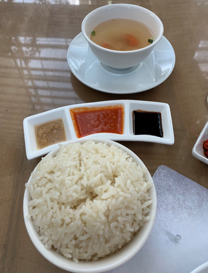As opposed to a traditional plate of chicken rice, this one had the chicken and rice served separately, which is common if you order a bigger portion of chicken. I think they catered the amount of chicken to the group size so we probably got a half chicken while the group of 4 had a whole chicken.
