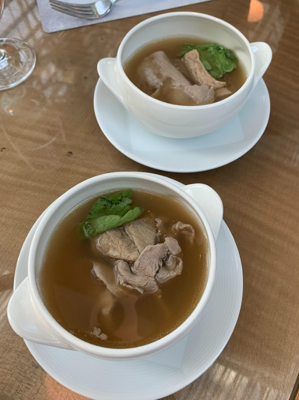 After a few minutes, our appetisers were served! We started with Bak Kut Teh, which is pork rib soup with plenty of chinese herbs and spices in a garlic and pepper broth. The pork was also really tender and easily came apart from the bone.