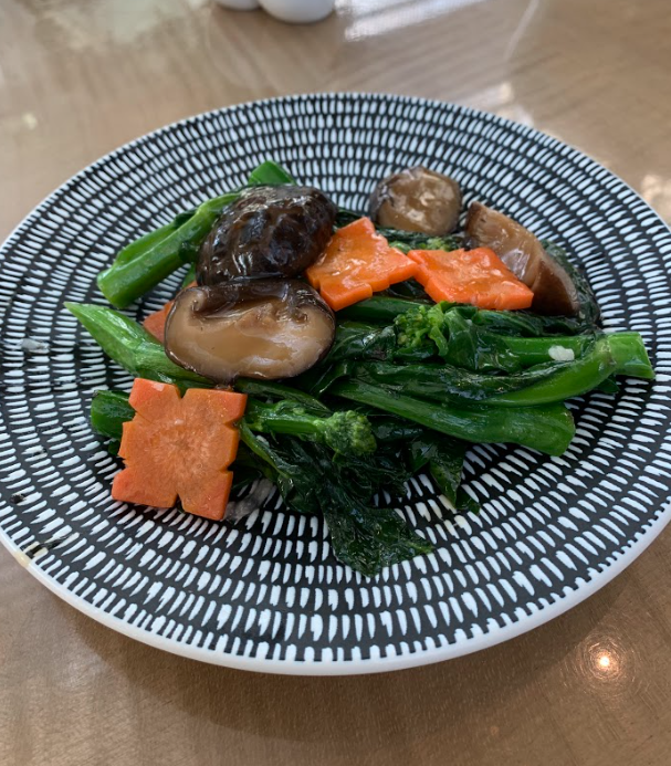 We also had some stir-fried vegetables; Hong Kong Kai Lan and Mushrooms in oyster sauce - a common vegetable dish to have with chicken rice.