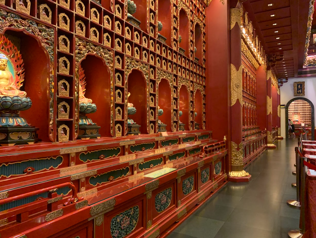 This is the Buddha Tooth Relic Temple and Museum! It was built in 2007 and gets its name from what the Buddhists regard as the left canine tooth of Buddha, which has been recovered from his funeral pyre in Kushinagar, India and displayed on the temple’s grounds.