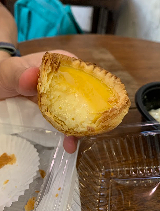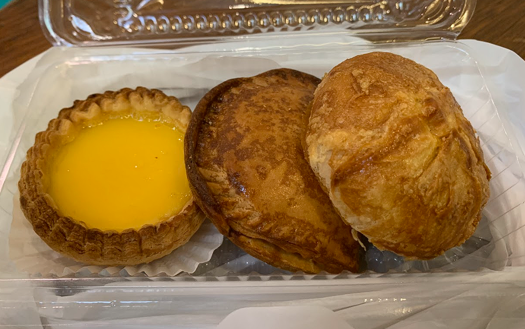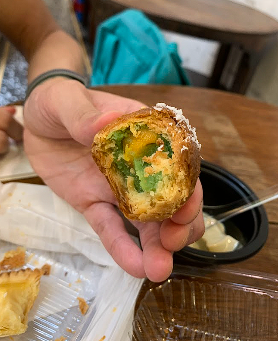 We had bought some of the pastries to try including an egg tart, wife pastry kaya puff and pandan salted egg pastry. The pastries were actually still warm which made it so much better!