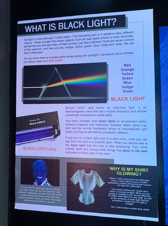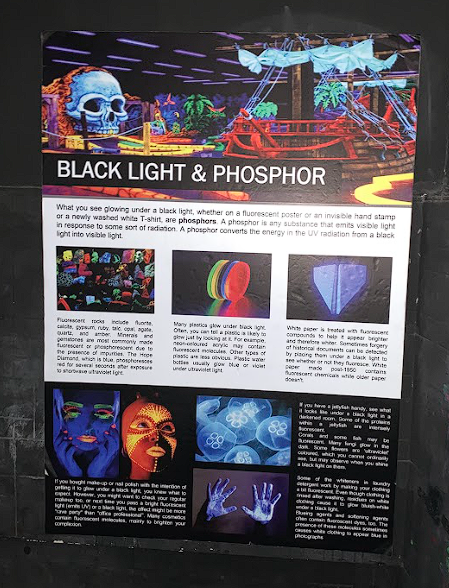 I guess this was the "museum" part of the place since there was also some information about phosphors and how they're the reason why our shirts would glow under a black light. It's actually pretty cool!