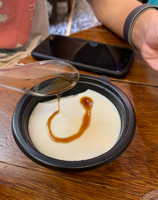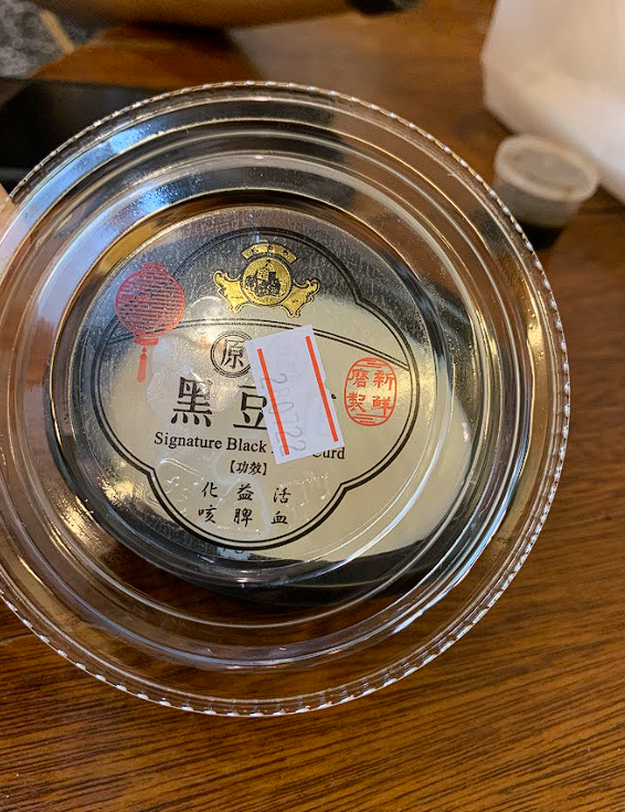 We've had soy beancurd desserts before but not a black one. I'm not sure what about this is black since it looked like normal beancurd but it did come with a container of sugar syrup so maybe that's what makes it black?
