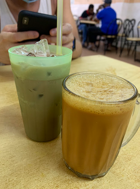 We sat down and a few minutes later, our drinks arrived! We ordered one teh tarik (pulled milk tea drink that's popular in Malaysia) and one iced milo. There wasn't a cold version of the teh tarik which was unfortunate since it was really warm, so I cooled it down with the ice cubes.