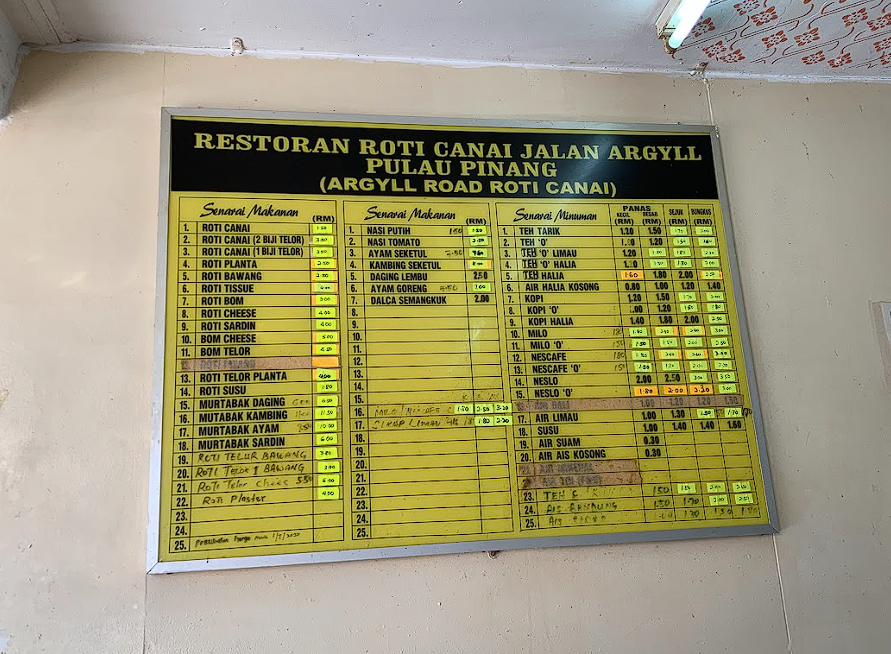 This was the menu they had with so many varieties of the roti canai, some murtabak, cooked dishes like ayam goreng (fried chicken), and plenty of drinks.