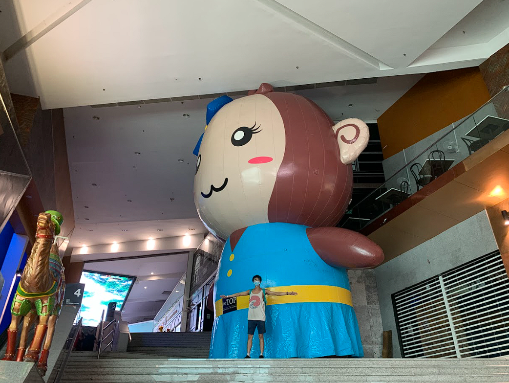 We were curious what was over here but it looked like it led to the other side of the building, towards the bridge that led to the mall but there was this super huge balloon of the mascot which is this girl monkey that looks quite cute.