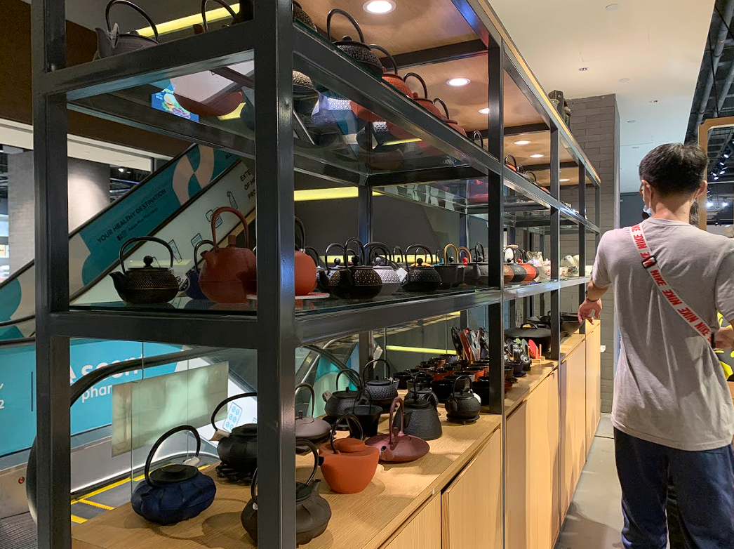 Upstairs was the lifestyle section with some household wares, and we saw this whole row of delicate Japanese teapots!