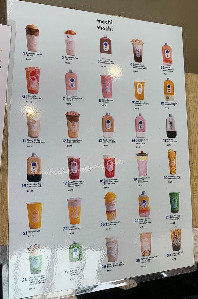 They had so many options to choose from, including some bottled drinks. I guess these were their specials with some fruity drinks, slushies and many milk tea options.