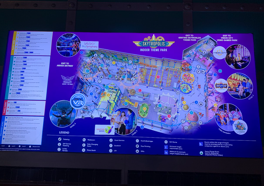I think this was the overall map of the whole place, including the outdoor theme park. You'll see that there are multiple hotels here, with malls in between and all of them are connected, so it really is a whole complex but bigger than anything I've ever been to.