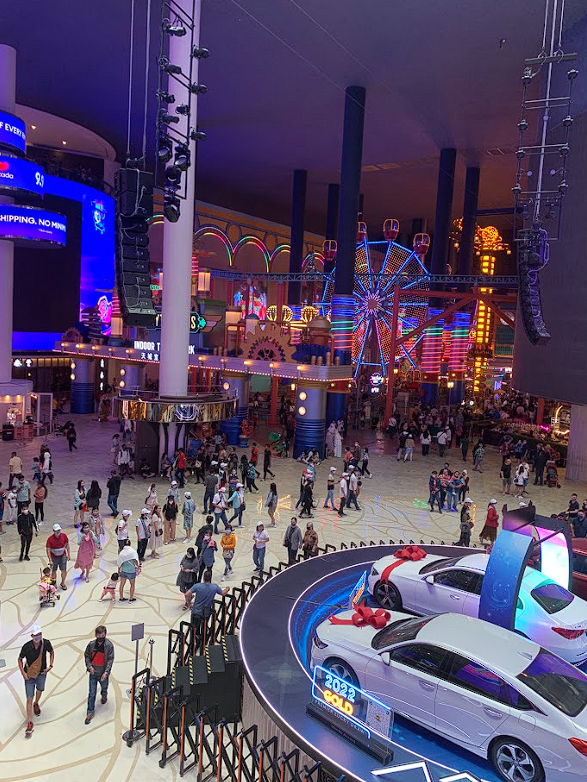 We went back into the main area of the huge mall where the indoor theme park was with some cars on display as prizes for something.