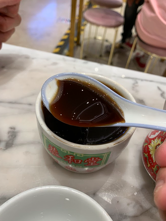 Sean has tried it before but I haven't, so he bought a bowl of their herbal jelly for us to share. It's served in their special traditional bowl, along with a small pot of sweet syrup. We also got some small bowls so it'd be easier to share.