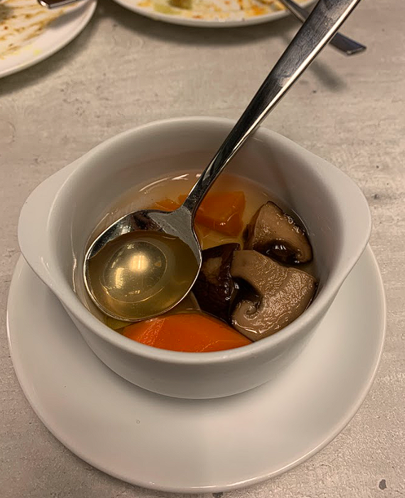 There was a nice light Japanese soup with mushrooms and carrots that I remember enjoying.