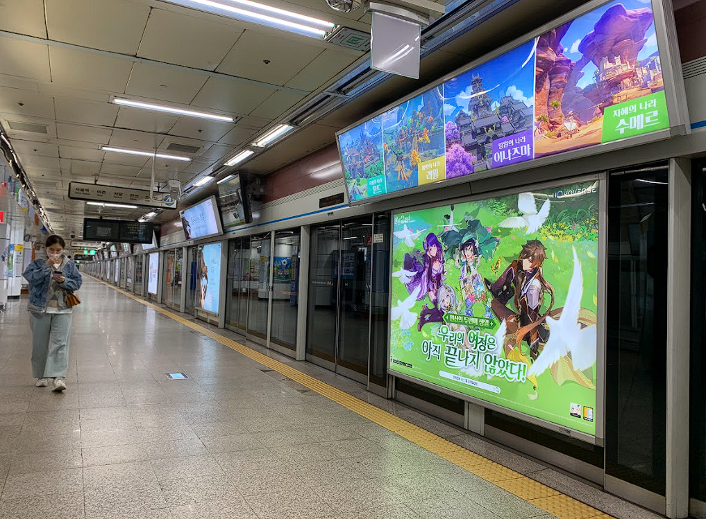 Eventually we arrived at our stop in Myeongdong and of course one of the ads I saw at the station was for Genshin Impact.