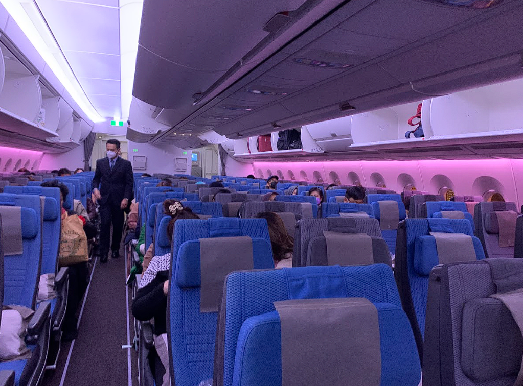 We were surprised to find our flight fairly empty, but I guess because it's a midnight flight.