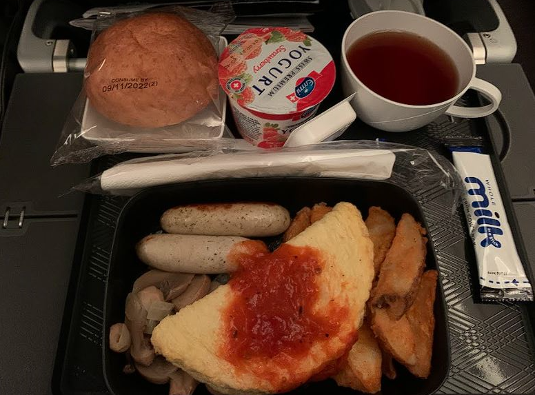 Our flight time was about 7 hours and halfway in we had breakfast on the flight at around 4am.