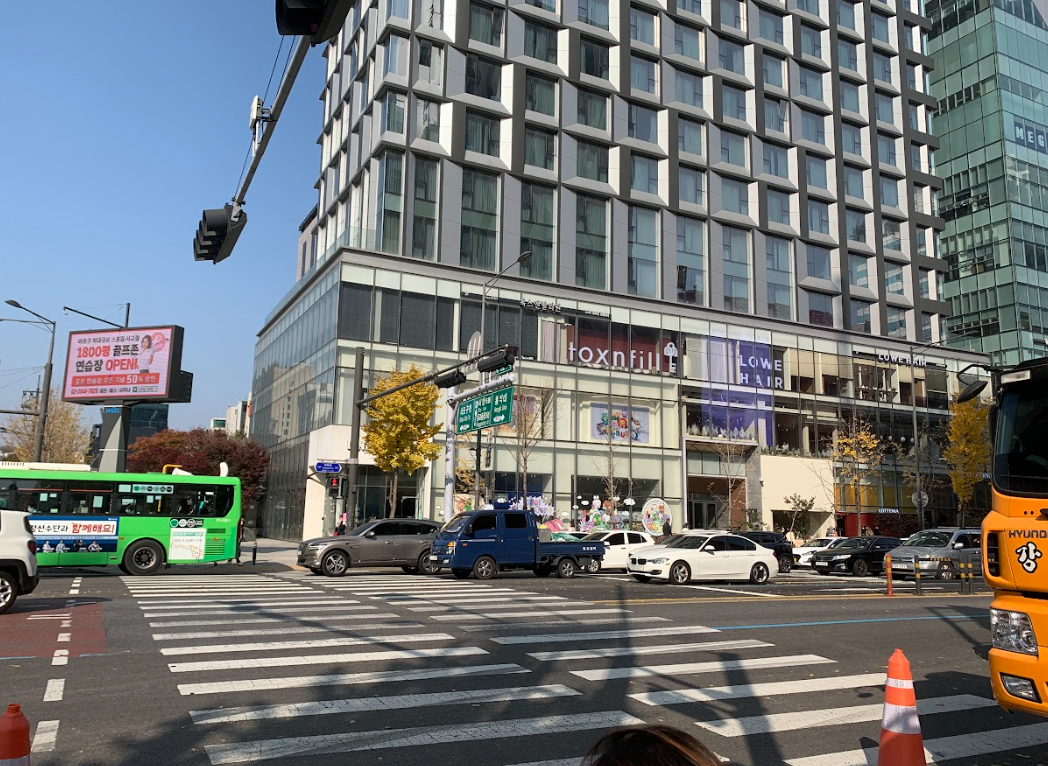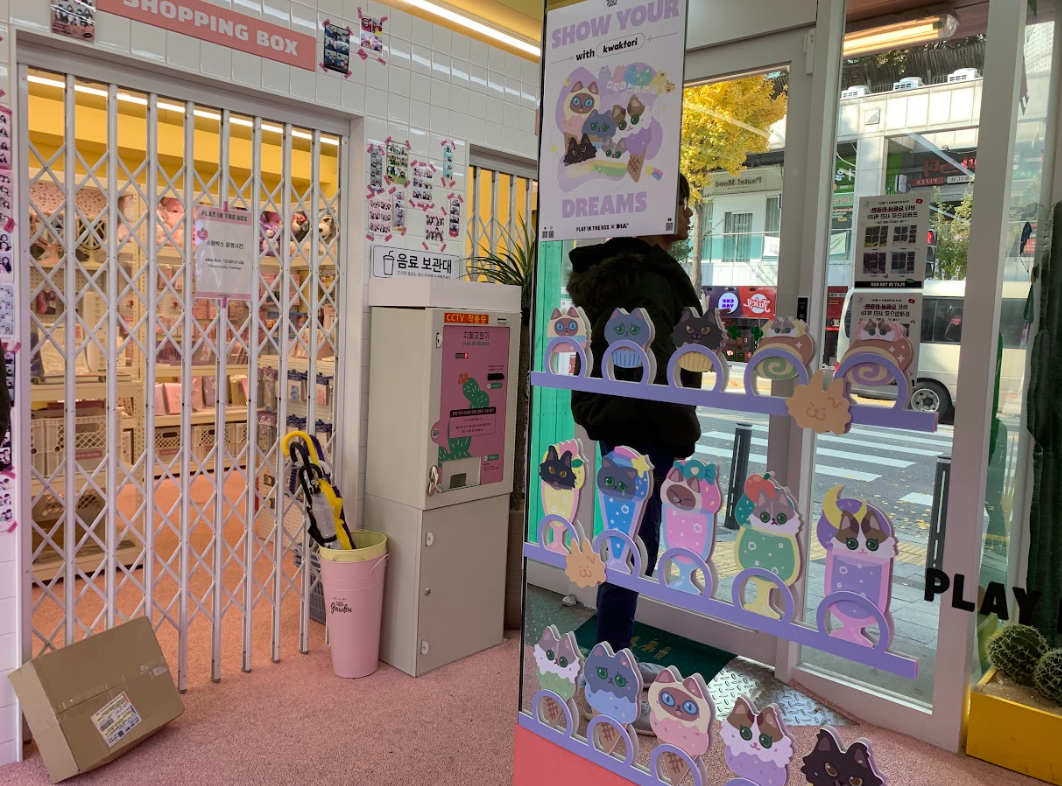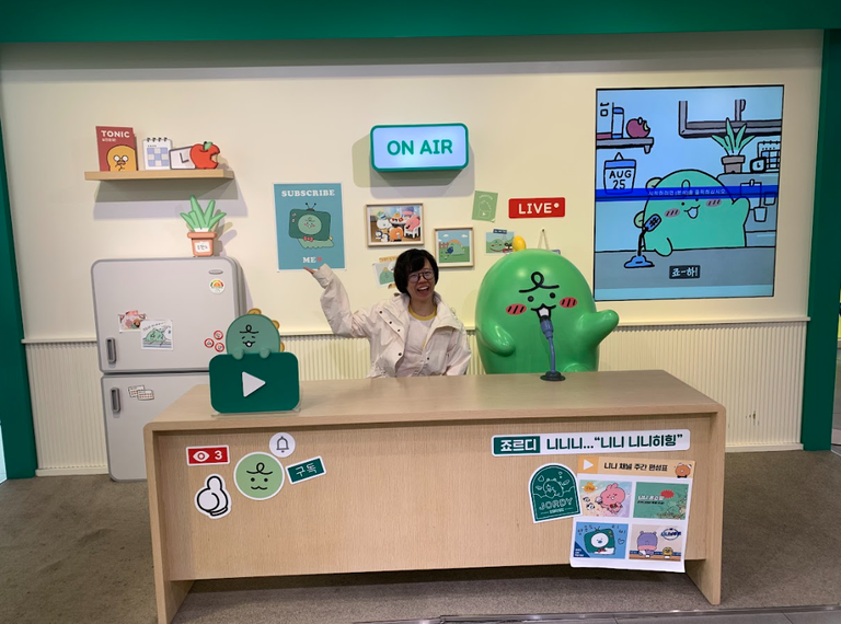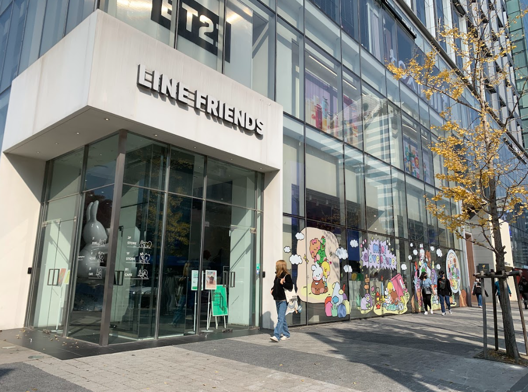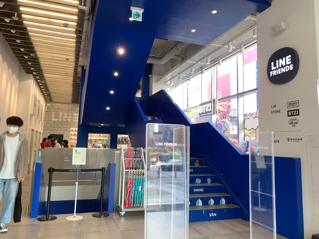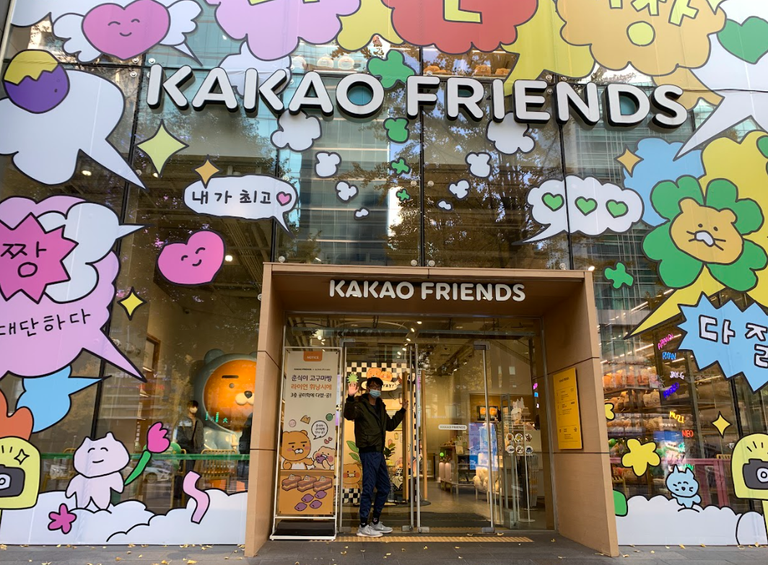 We visited the very huge Kakao Friends shop right outside the station and saw lots of cute merchandise and lifestyle goods! A few floors up in the same building we also came across a very cool and expensive-looking cafe!