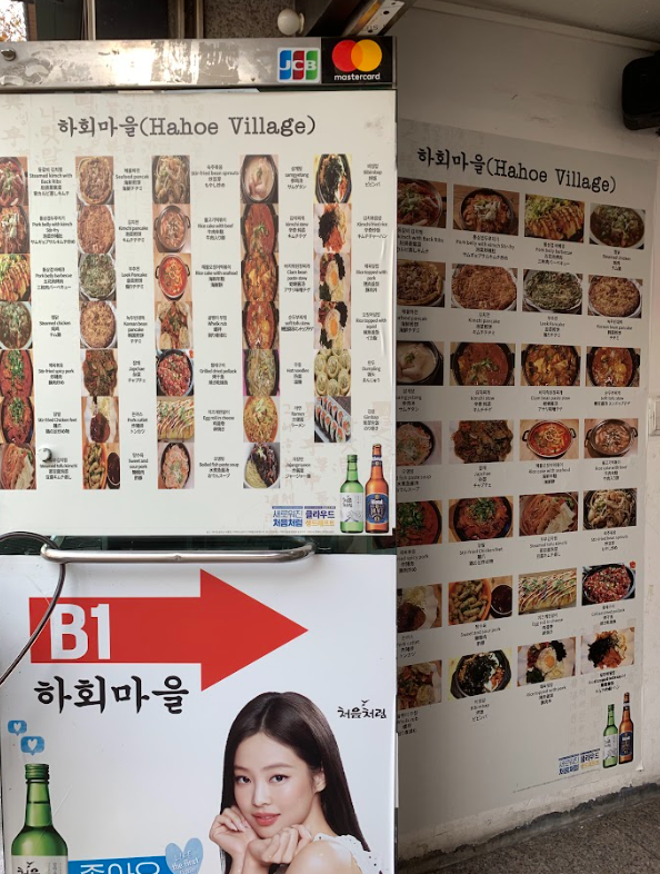 We saw this advertisement for a restaurant called Hahoe Village that was located below ground and they had so many different classic Korean dishes that looked so good! It was also in English so we figured they were probably tourist-friendly so we decided to check it out!
