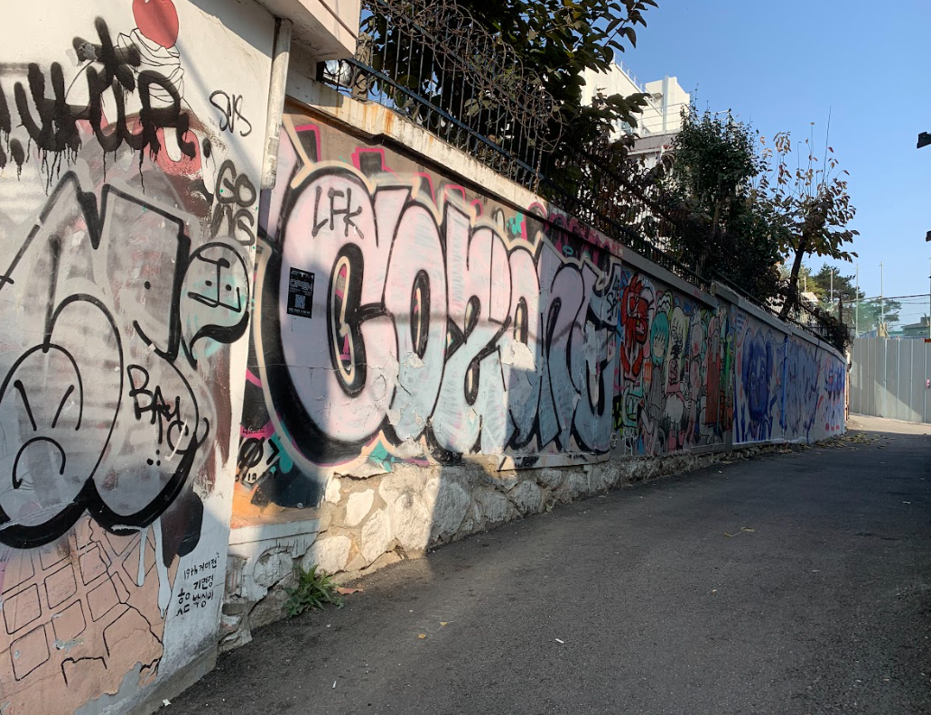 There were more street art here but none as impressive as the first wall we saw. It was curious that they used English letters instead of Korean though, even though it didn't really make much sense anyway.
