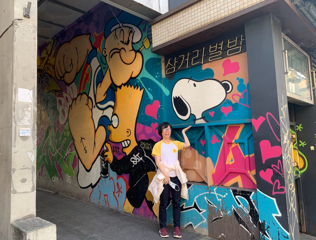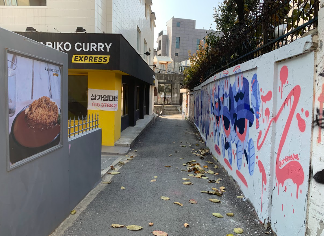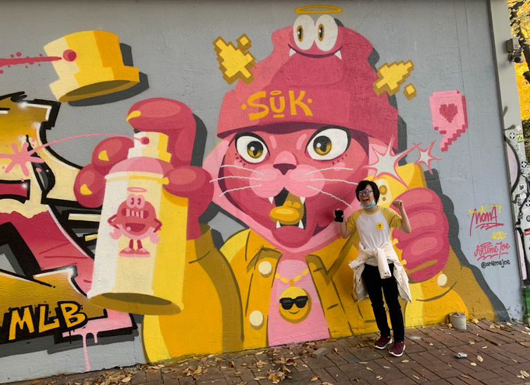 We were trying to find more but I guess most of the mural street was closed off. Very unfortunate but we did see a few more street art pieces in a different side of Hongdae though.