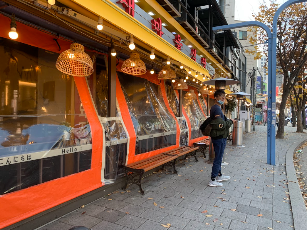 We were getting hungry for lunch so we went back towards the main part of Hongdae where were before and where most of the restaurants were.