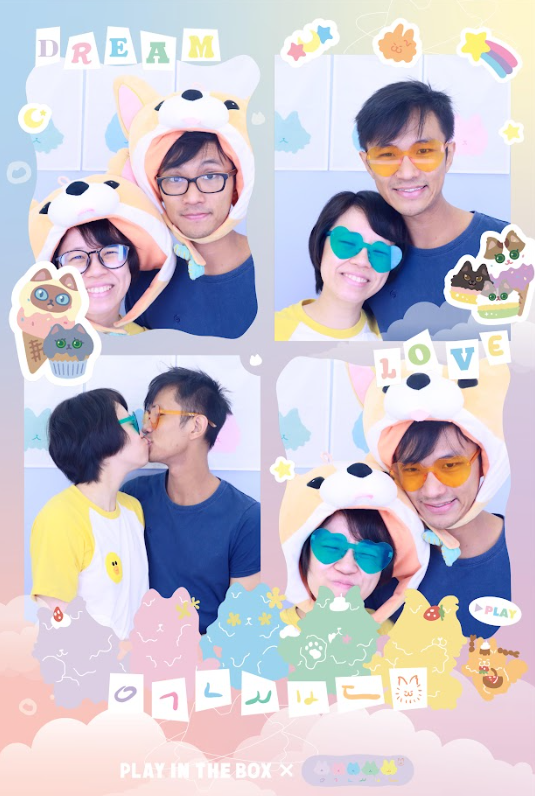 I think each photo booth machine had a different theme but we saw this one with some very cute cats as desserts so we tried that.