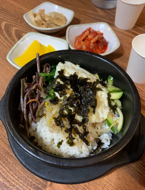 Unfortunately I didn't get a picture of the menu but they had classic Korean dishes like potato pancake with different fillings, kimchi stew, japchae, rice cakes with different broths, dumplings, and bibimbap which I ordered.