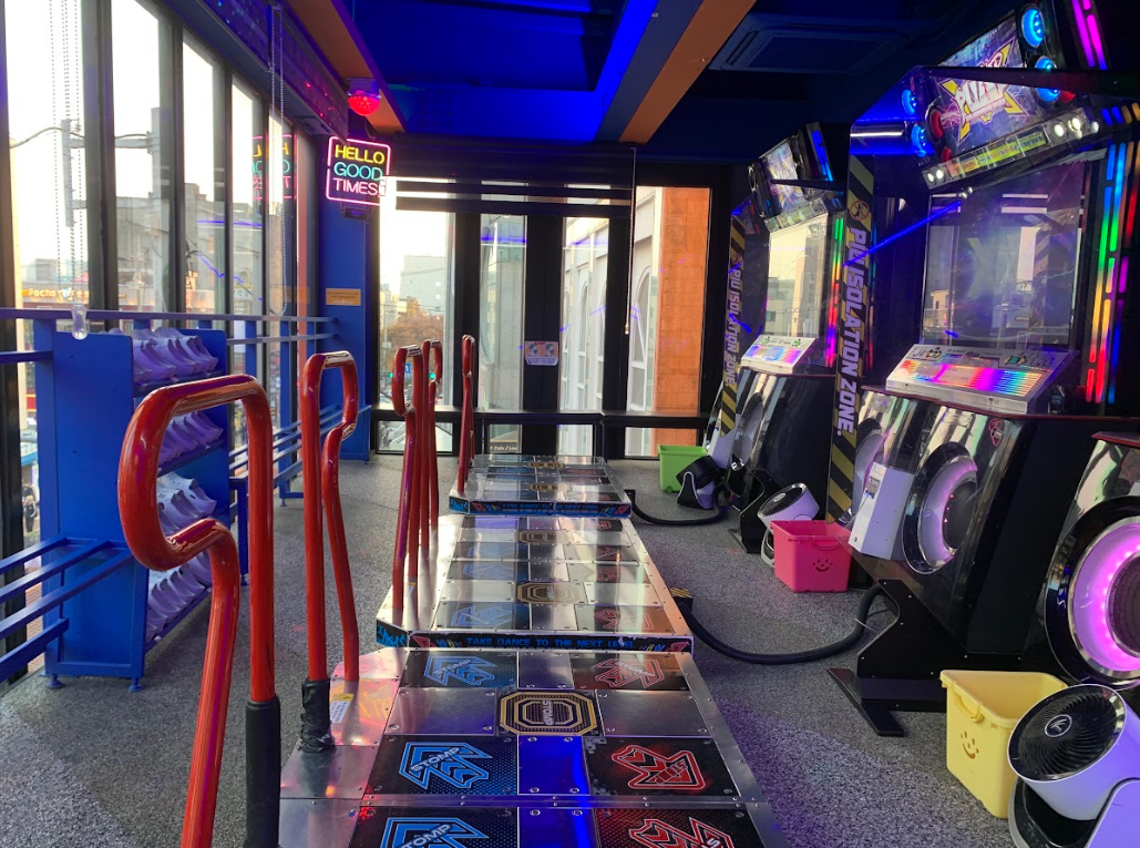 Sean's really into DDR but as expected they only had the Korean version of dance games which is Pump it Up.