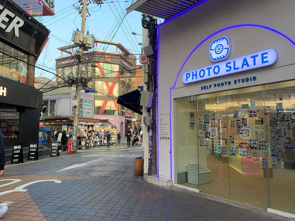 The area has lots of local shops, clubs, cafés and entertainment like photo studios! Although I wouldn't say it's unique to Hongdae since Seoul has plenty of these self photo studios around, Hongdae probably has the highest number that we've seen.