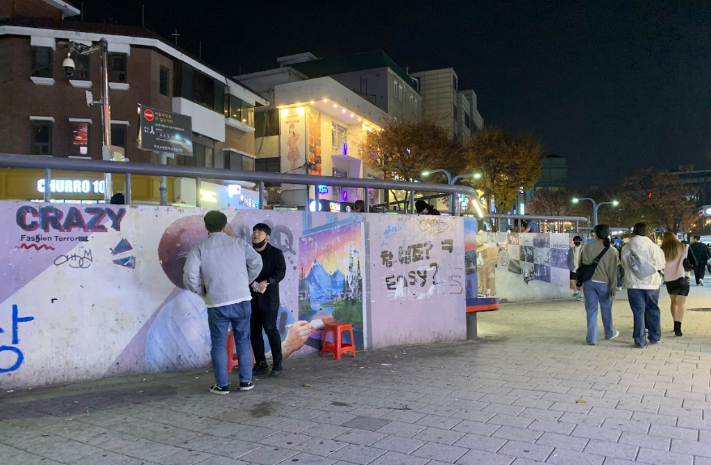 Hongdae is known as the art district of Seoul and is a popular place for lots of young people to gather since it's near Hongik University for which it is named.