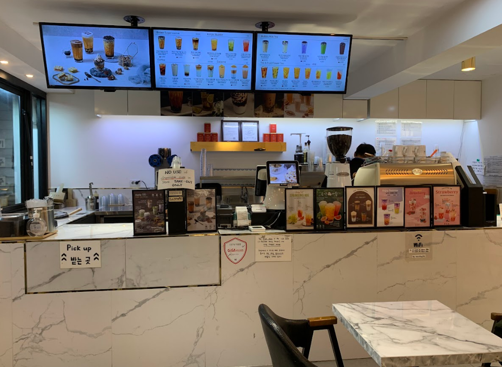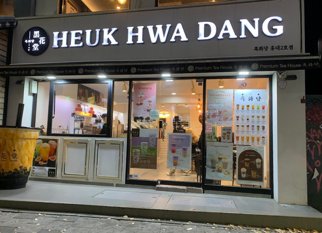 After we walked for a while Sean wanted to get a drink so we decided to try this boba/bubble tea shop called Heuk Hwa Dang.