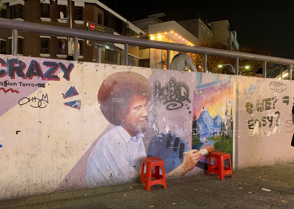 After we were done we walked back towards where we first came into Hongdae and came across this mural of Bob Ross!