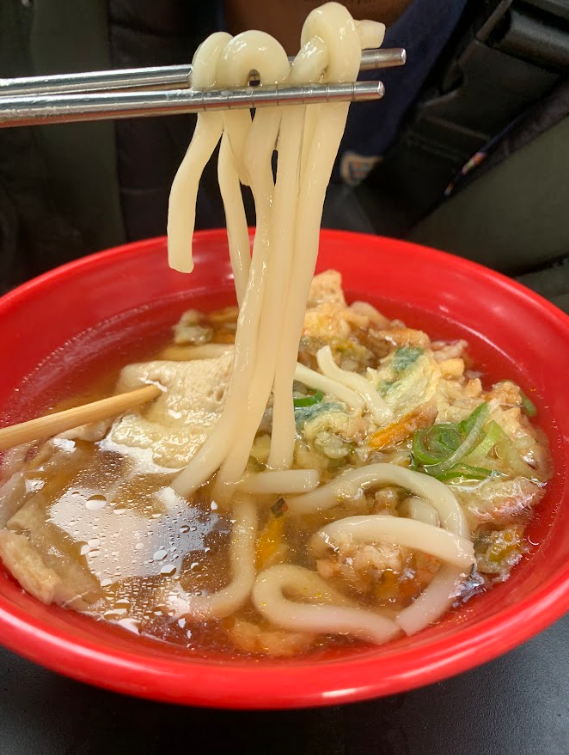 I wanted something warm since the skewer wasn't very satisfying and it was still quite cold out so Sean went to get a bowl of warm udon for us to share.