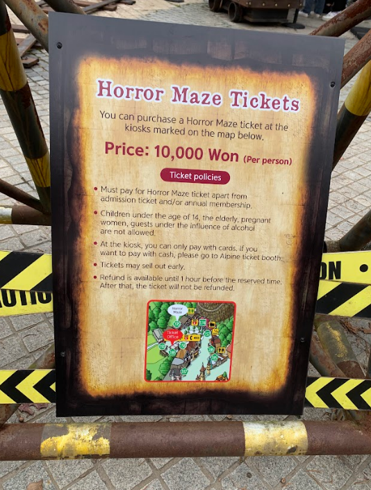 However we found out that this attraction is paid separately from our Everland ticket for some reason. It was an extra 10,000 KRW per person for this Maze and since neither of us like Horror or Mazes we passed on this one.