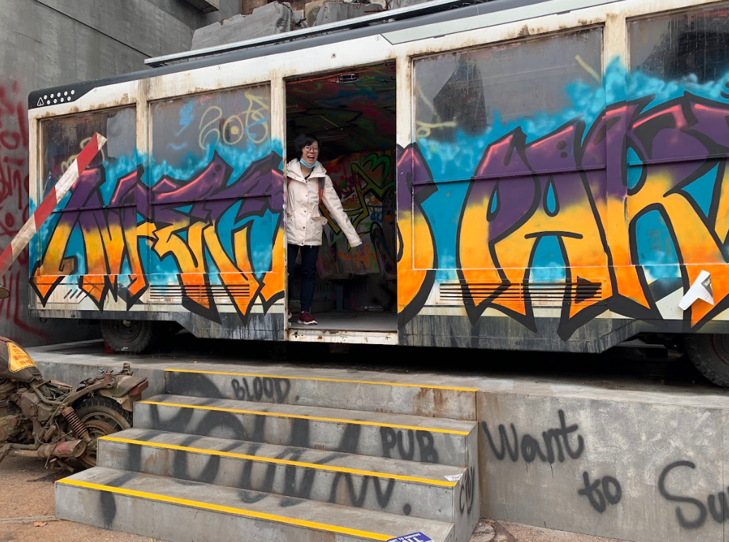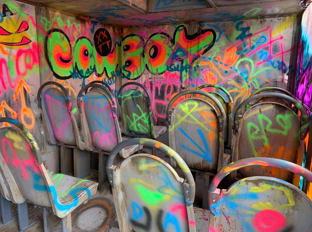 This train car in front had a very colourful inside full of graffiti that looked kinda cool but a little overdone too.