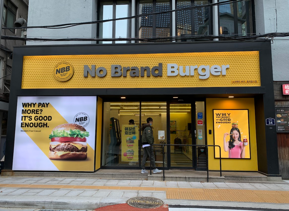 Contrary to its name, No Brand is actually a brand and I discovered them from their butter cookies which are individually packaged into packs of 6 in a tub. They're really good and probably one of my favourite butter biscuit brands but it's only until our trip to Seoul that I discovered they have a lot more things including a burger shop!