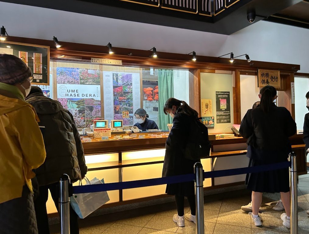 The temple is called Kamakura Hasedera Temple which tbh doesn't really sound very Japanese which was interesting. When we arrived there thankfully wasn't a line at the counter for tickets.