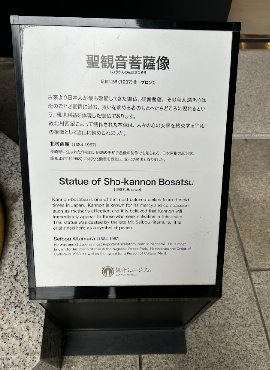 We did manage to get a picture with this Kannon statue which is called the Sho-kannon Bosatsu. It does look quite different compared to the Guanyin statues we've seen.