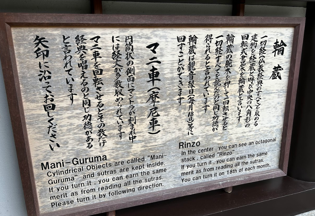 Anyway, the other building is a Rinzo hall that houses a Mani-Guruma, which is a Japanese Buddhism prayer wheel. Apparently turning it a certain direction will give you the merit from reading the sutras.