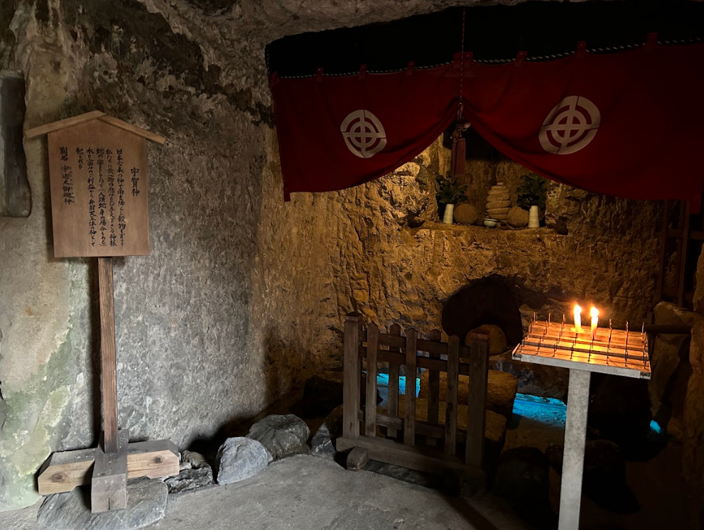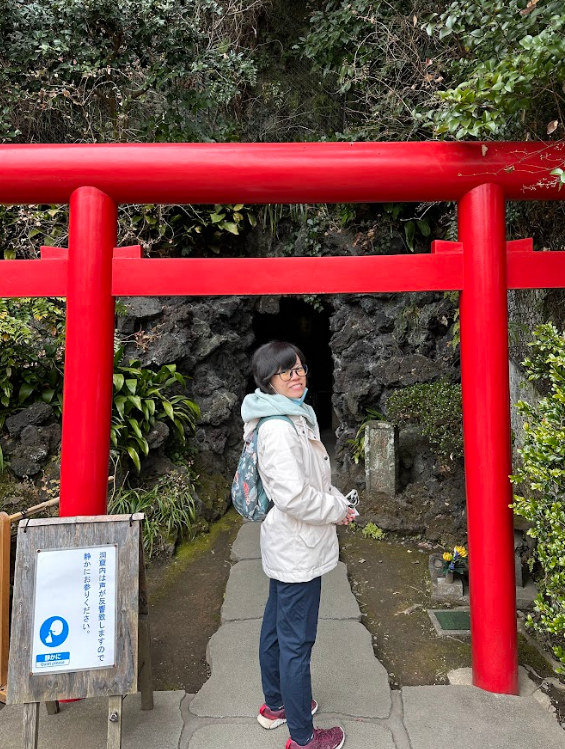 There was a bright red torii gate at the entrance of the cave that was actually quite short.