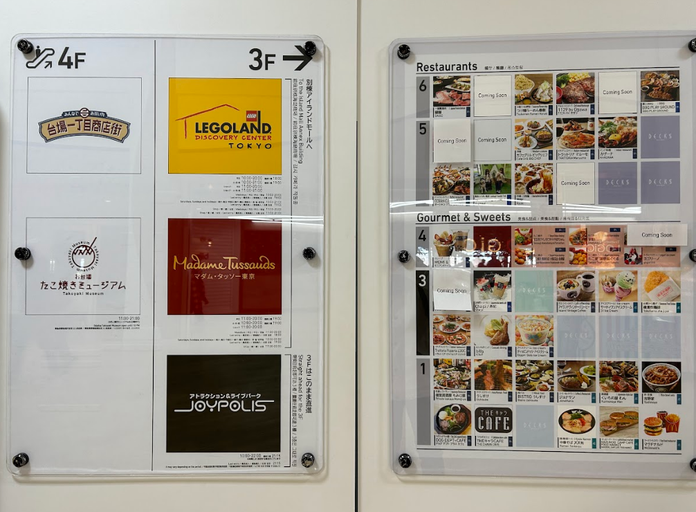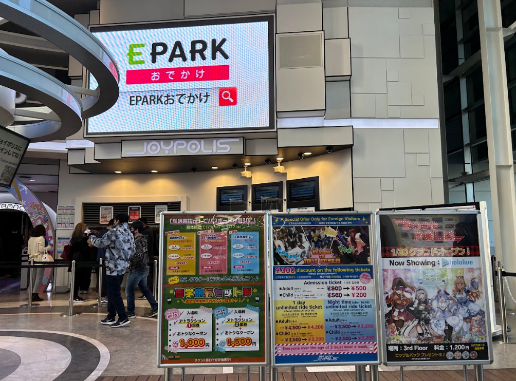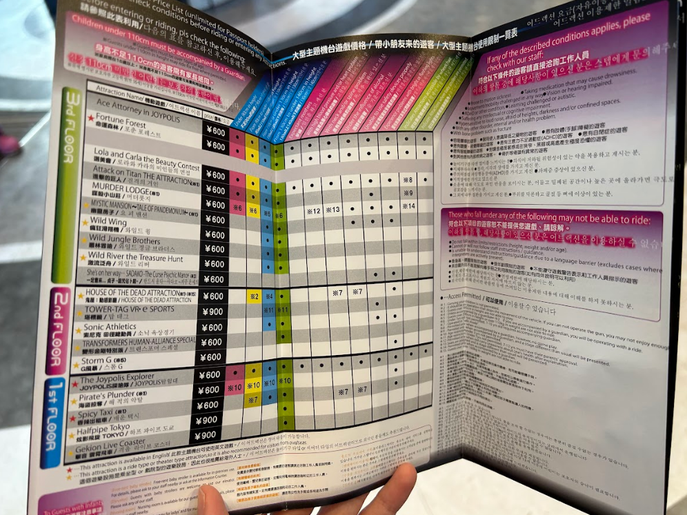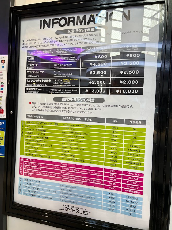 These were the ticket prices for Joypolis and we were actually a little confused since it looked like we had to pay for the attractions we wanted to ride but if you get the passport you can ride whatever you want. I guess it's good to have the option if you didn't have a lot of time.