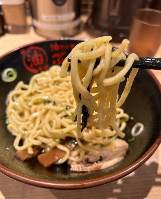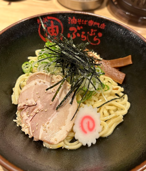 Also known as oil noodles, it is noodles tossed in a flavorful sauce with lots of different toppings.