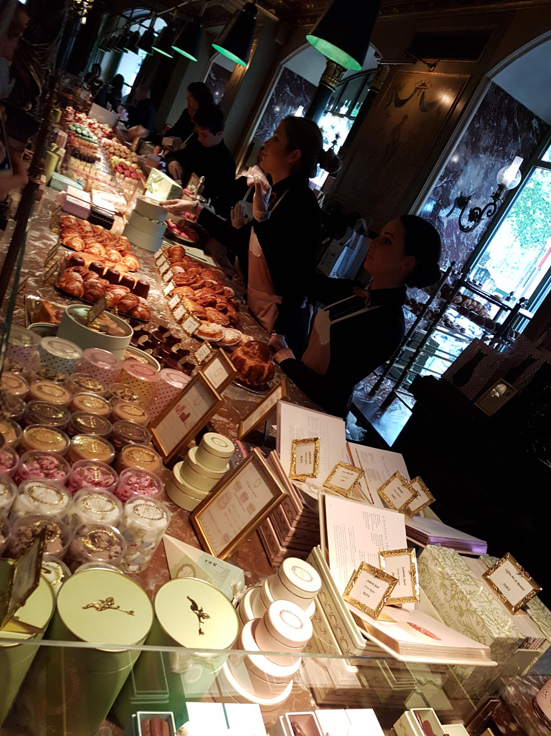 And the line was really long! I didn't know at the time, but Ladurée is a really famous French luxury bakery and sweets maker house! It is one of the world's best-known premier sellers of the double-decker macaron, selling at least 15,000 a day! No wonder the queue was so long. I didn't have money to buy anything so I just waited for the girls to get theirs.