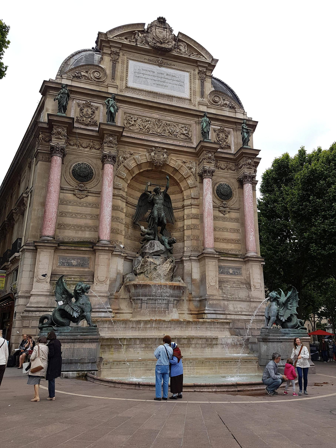 Not too far off, we also saw the Fontaine Saint-Michel! Which I learned is a monumental fountain constructed in 1858–1860 during the French Second Empire and since 1926, has been listed as national heritage site or monument historique!