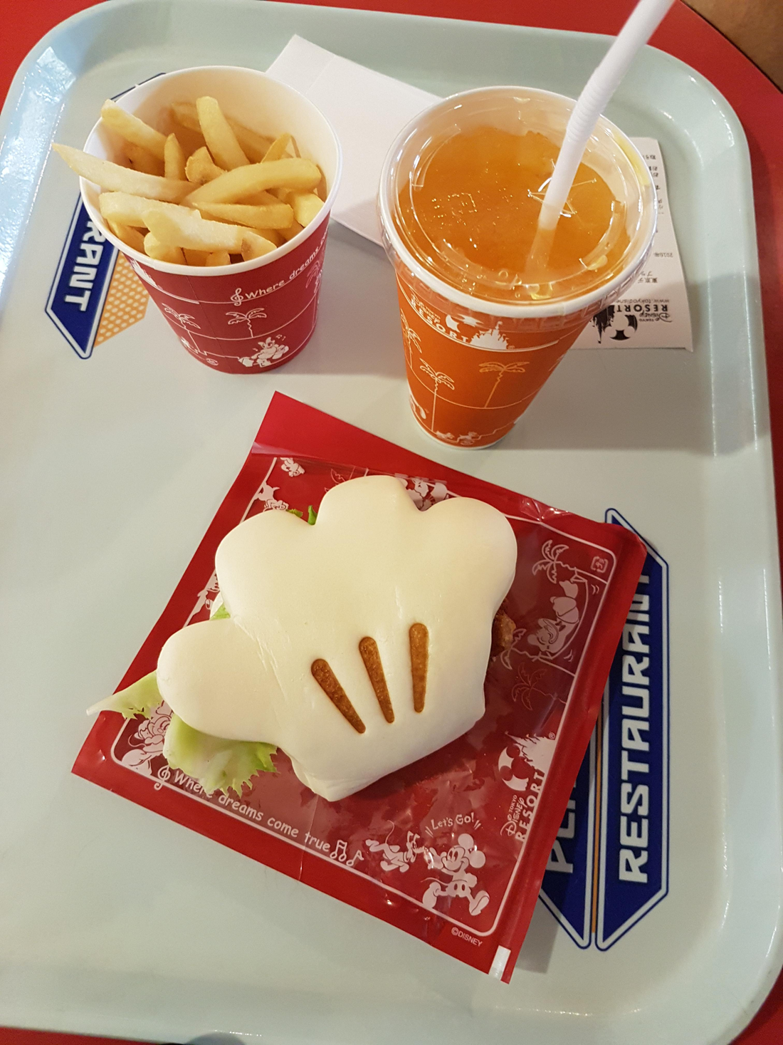 Everything was pretty expensive, as expected, so we split a burger meal. We didn't expect the burger to be so small though. But it looked interesting! And the bun wasn't the regular sesame seed bun, it was like those Chinese steamed buns / baos!