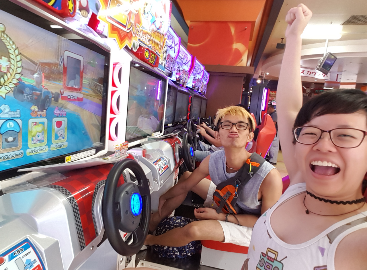 So after walking pretty much the whole Character Street, we headed to the arcade! We played a couple rounds of Mario Kart and guess who won! 😄