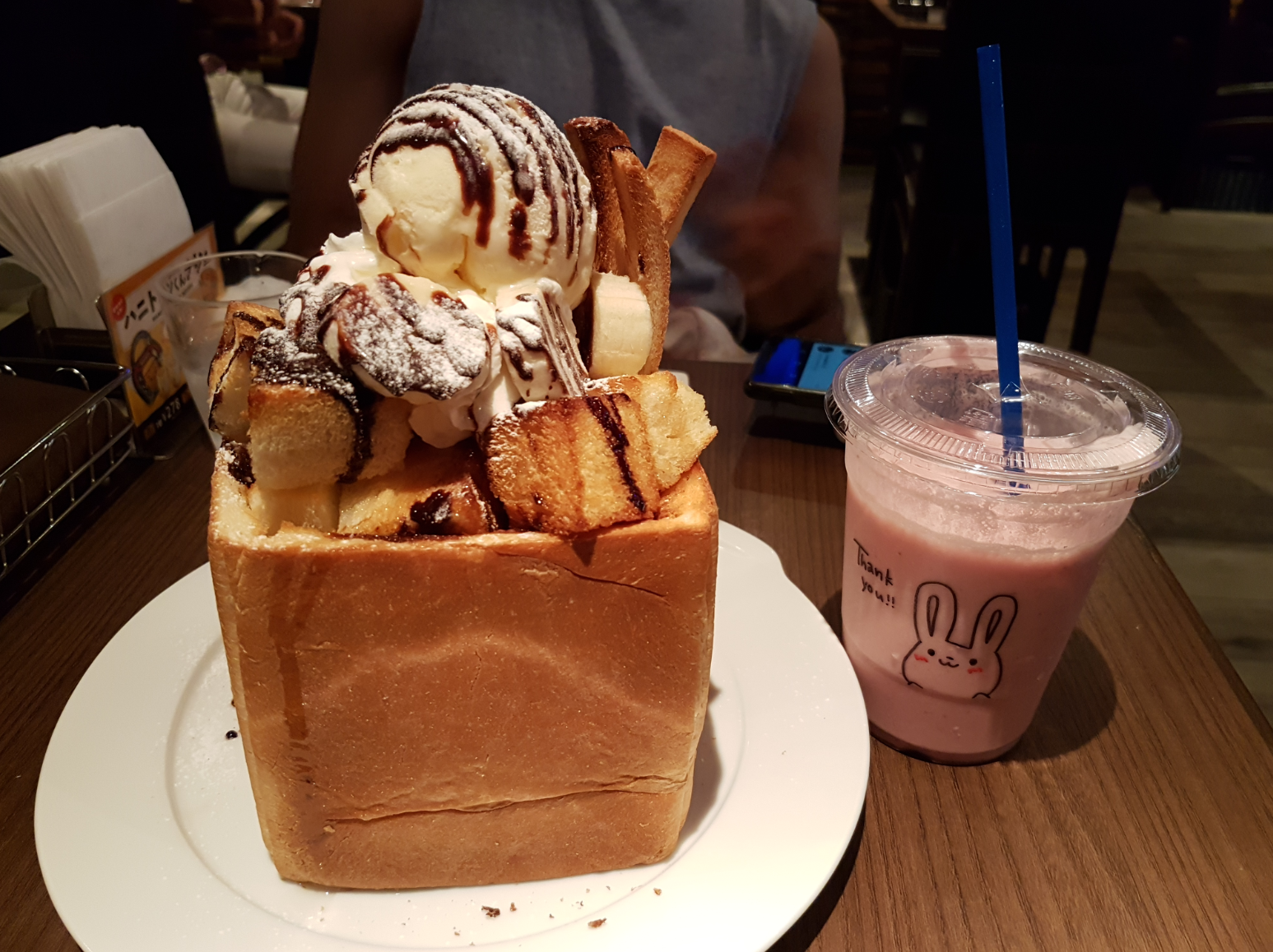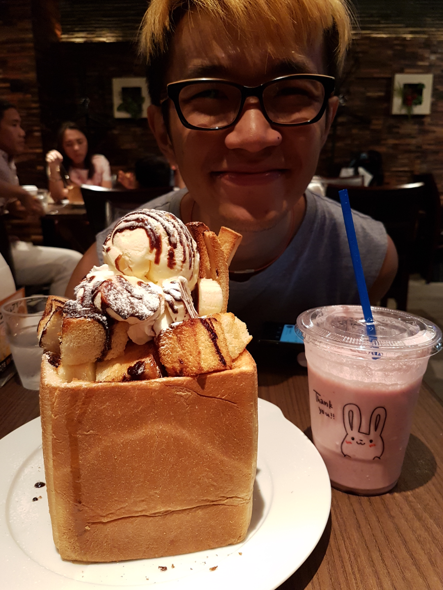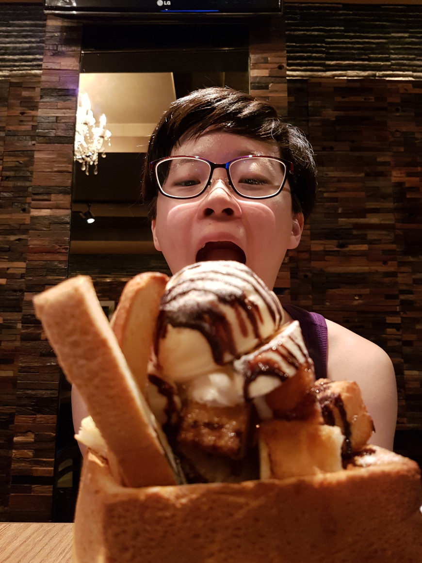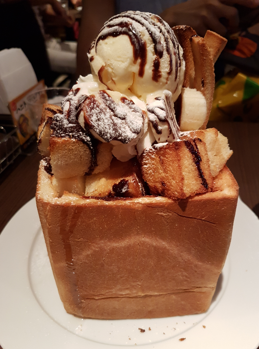 This is a hotel, karaoke bar and cafe all in one! And they have one of the best desserts I've seen - the thiccest toast ever!