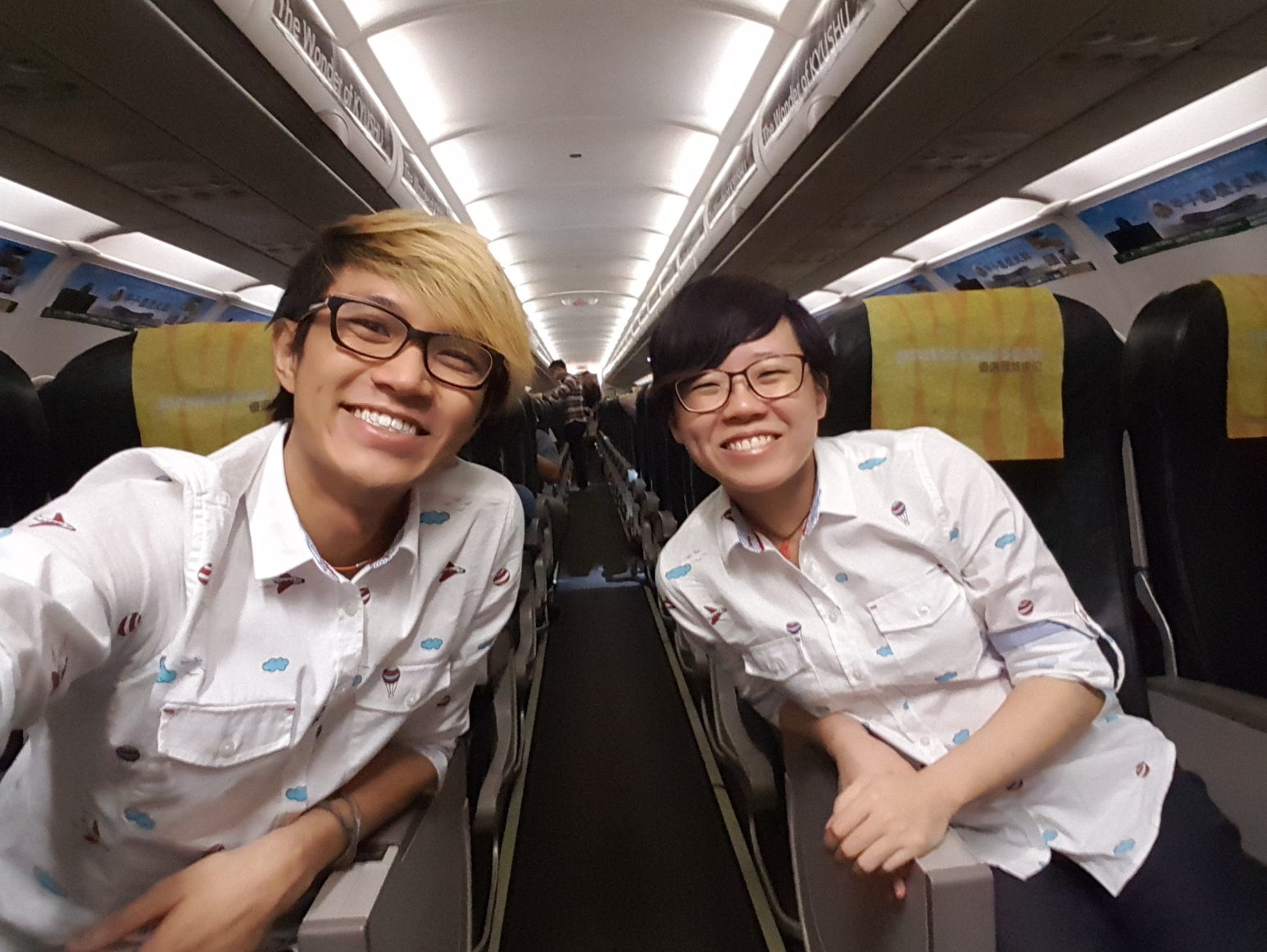 And in our matching shirts to boot! If you look closely our shirts are actually flight-themed! With clouds, planes and hot air balloons. So it seemed fitting for the occasion.