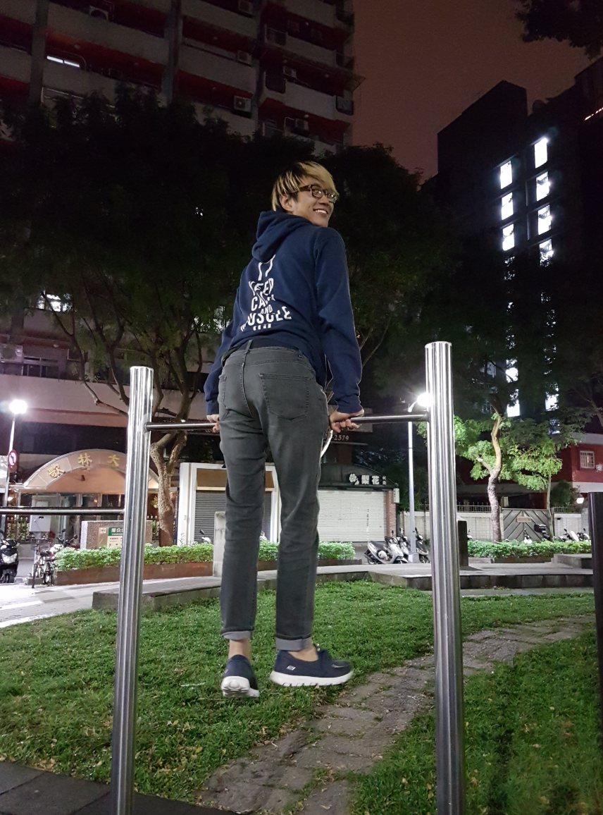 Sean's really into calisthenics; doing pull-ups and muscle ups and stuff. I'm sure you can tell from his hoodie.