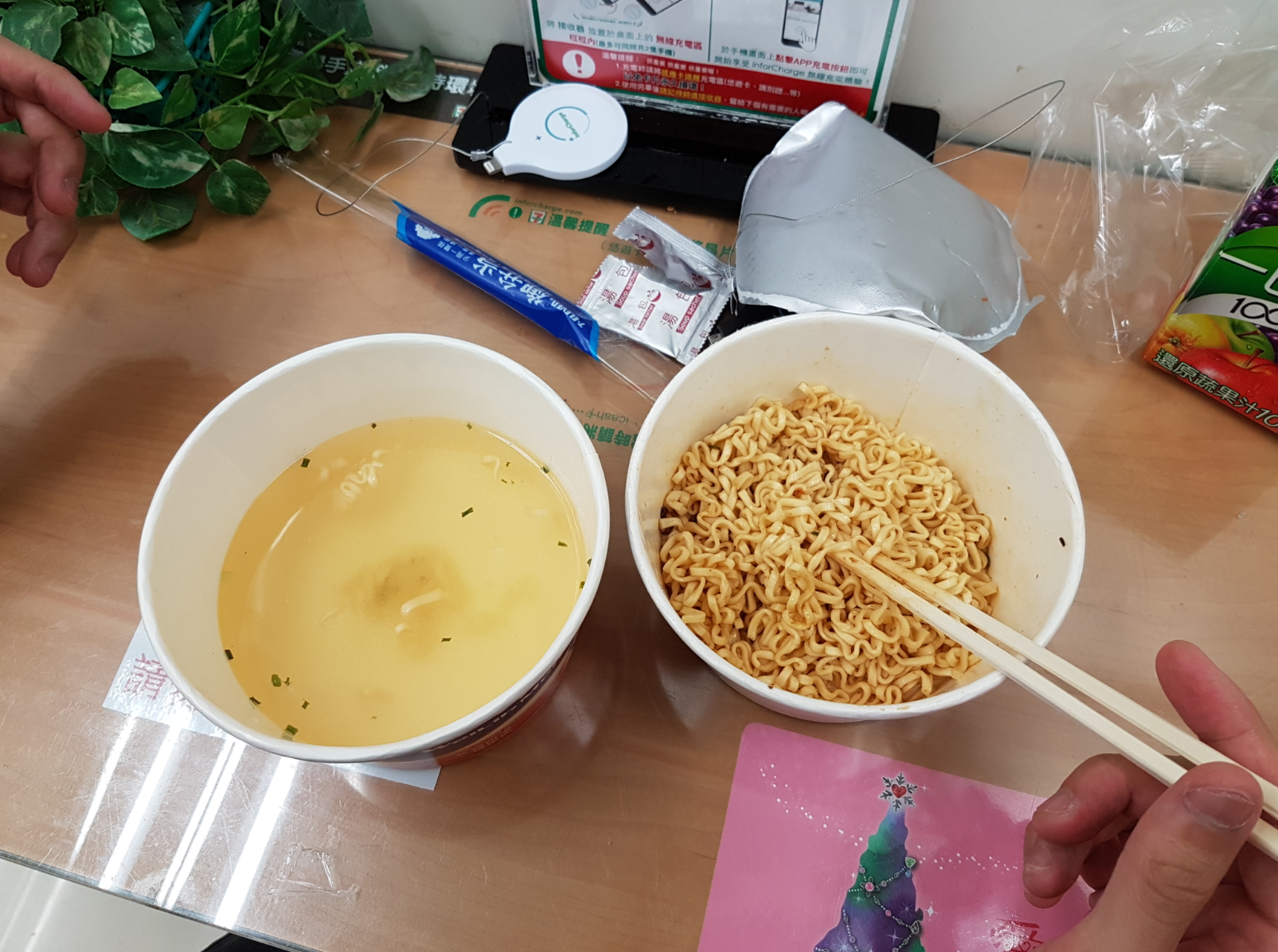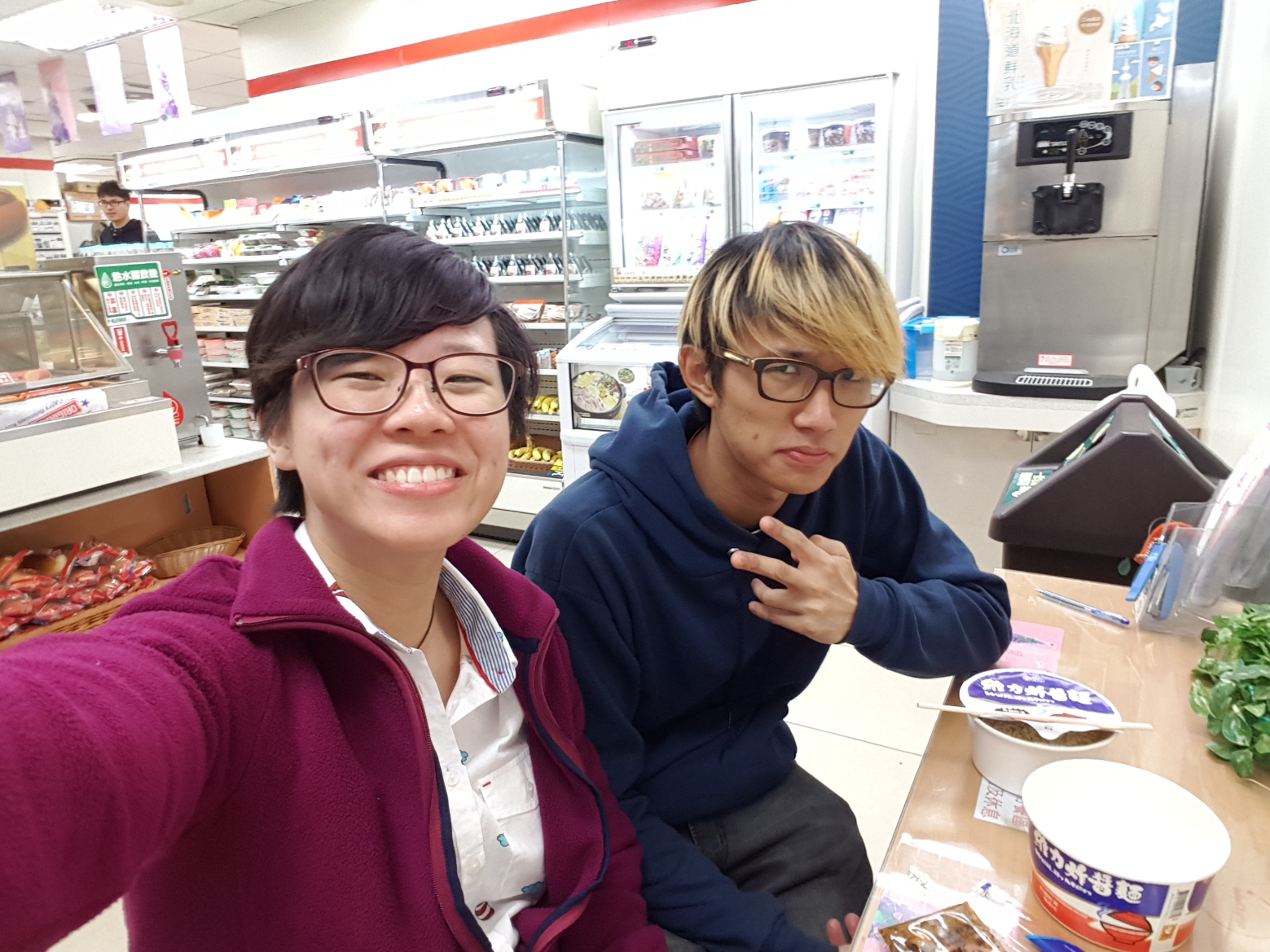 And just like Japanese convenience stores, they had all sorts of snacks and light meals. The store even had a proper seating area where you could sit and enjoy your food for a bit. We decided to try one of their instant noodles on the spot.