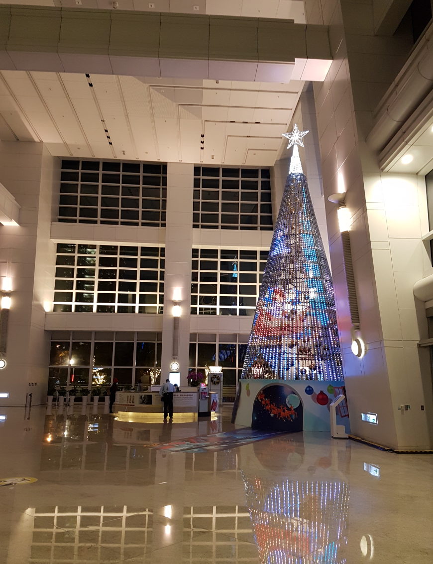 It was super windy and cold out because it was drizzling at the same time so we headed inside to explore and warm up. And there was a fancy digital Christmas tree inside!